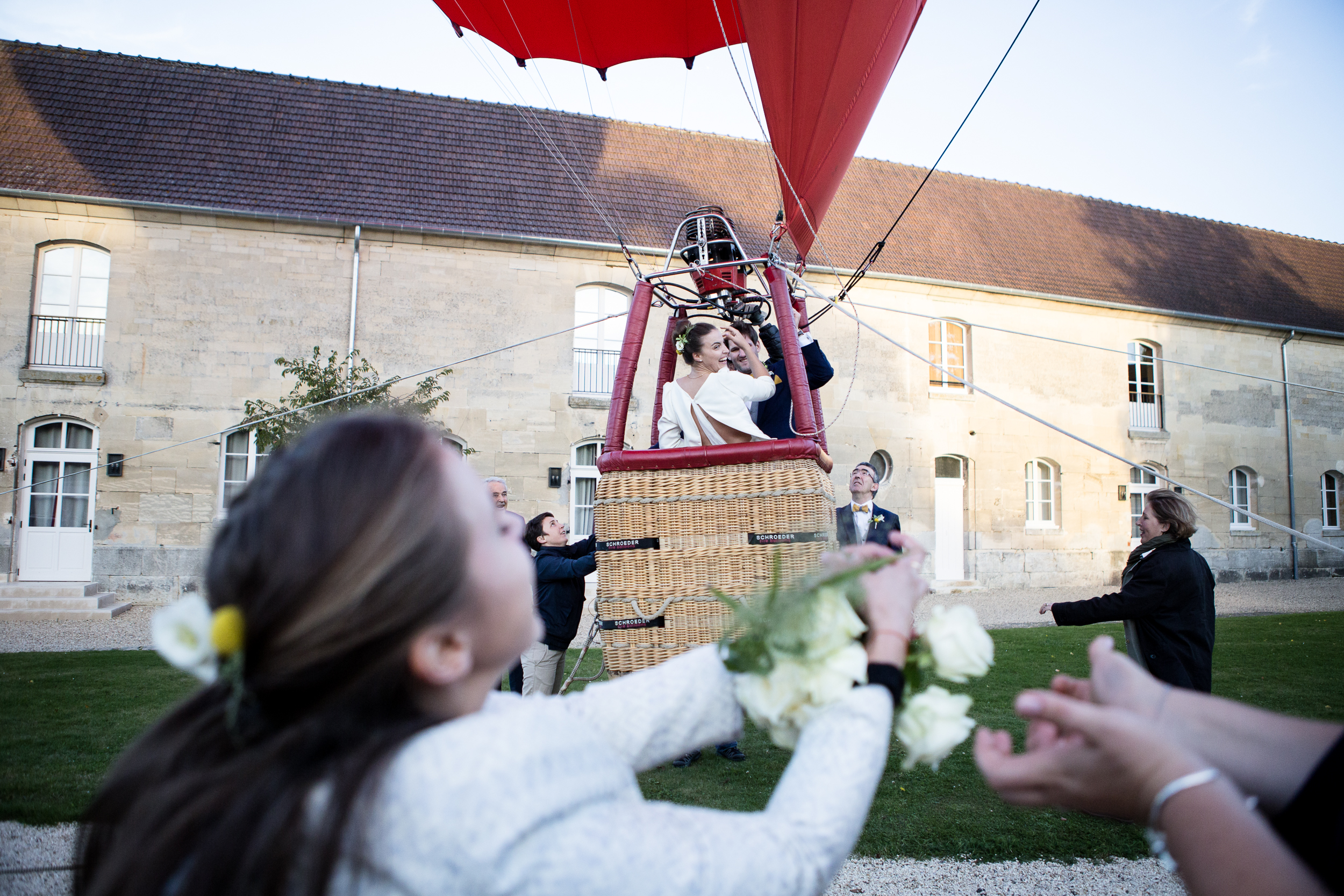 Aujourd’hui Jérôme, leur grand frère, s’est marié avec la belle Capucine. Un mariage riche en émotions, à l’image de la sensibilité de la mariée ! Et, c’est donc au Clos Barisseuse dans l’Oise que les mariés ont donné rendez-vous à leurs convives pour fêter l’événement. Un cadre bucolique où le temps, en ce mois d’octobre, fut exceptionnellement doux et l’ambiance agréable. On y joue au Molky, on y trique bien entendu puis le lancer de bouquet se fait en montgolfière, passion partagée dans la famille de Capucine. Le ballon se gonfle d’air sous le yeux admiratifs des invités, des plus petits surtout, qui ont alors des étoiles dans les yeux face à ce spectacle inhabituel.